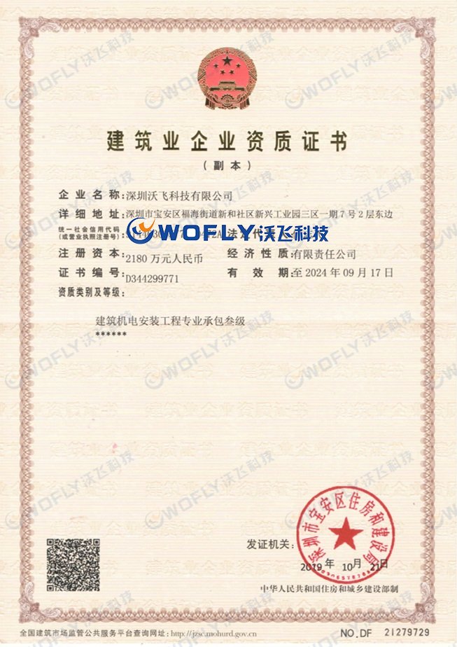 沃飛具有國家建筑機(jī)電安裝專業(yè)承包資質(zhì),國家安全生產(chǎn)許可證,GC2壓力管道安裝資質(zhì)
