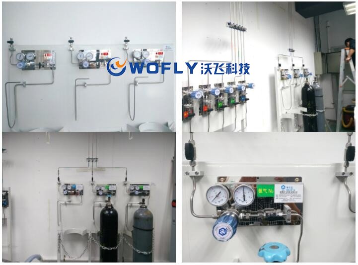 此外,沃飛科技根據實驗室環境,配合施工方協作設計方案。眾所周知,管路管線交錯供氣錯綜復雜,為避免錯漏,公司設計人員將每一路氣體的交叉點、控制閥都在圖紙上注明,通過實地勘察,進行全面、系統地調查分析,為氣路設計提供細致、可靠數據。同時在氣站建設方面,使用氣瓶間管理方式,提高氣站使用的安全性,氣源控制采用不銹鋼控制面板,輸送過程管路連接采用不銹鋼系列閥門、接頭等產品。