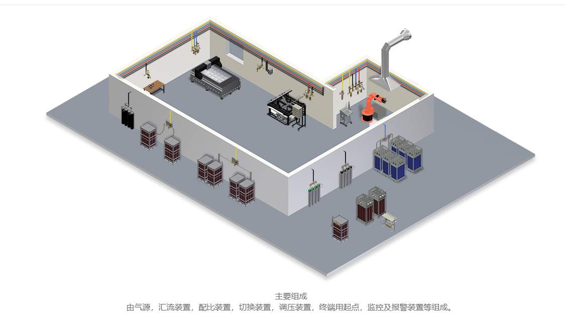 氣源集中管理:將鋼瓶等氣源放置在工作區外的安全區域,減少高壓設備及潛在危險,避免有毒或可燃氣體泄漏風險。