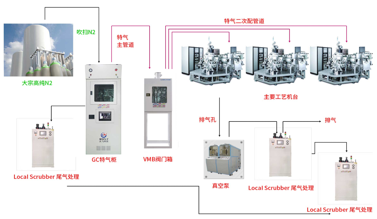 特氣體管道需達到ppb、ppt級潔凈度,避免微粒污染。施工時需在臨時凈化間內進行預組裝,切割時用高純氬氣吹掃,焊接后用高純氮氣吹掃并檢漏保壓。若管道內殘留氧氣或水分,焊接時會形成氧化膜,成為微粒發生源。