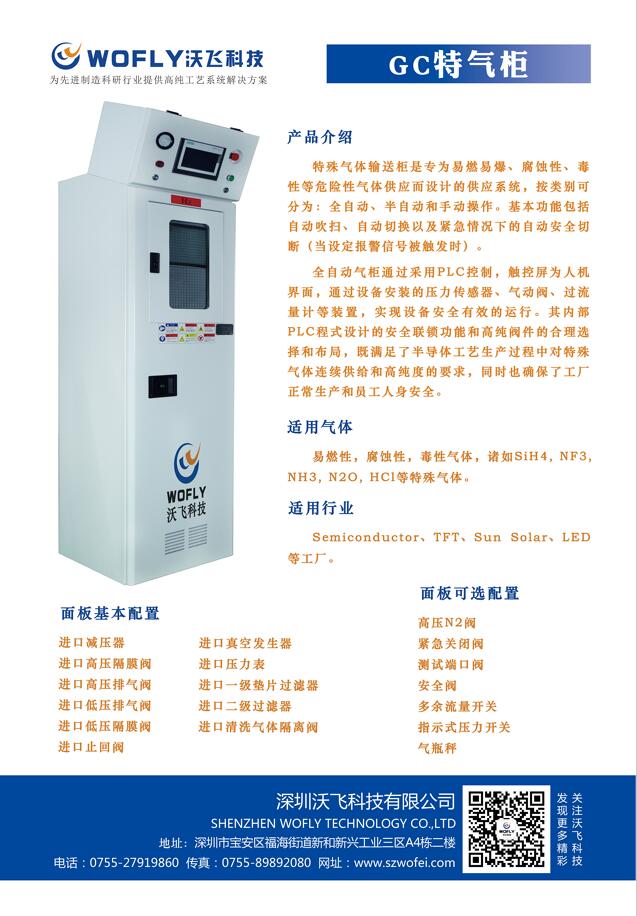 深圳沃飛科技有限公司自主研發生產的特氣柜可以根據客戶的氣體使用需求來進行客需定制,詳情請致電:0755-27919860