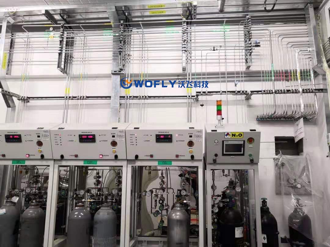 沃飛WOFLY全自動特氣柜(GC)通過PLC面板,配合觸摸屏進行系統顯示和設定,從而實現設備安全有效的運行。其內部PLC程式設計的安全聯鎖功能、高純閥件的合理選擇和布局,既滿足了CVD(化學氣相沉積)在生產過程中對氣體原材料的高純度和連續穩定供給的要求,也確保了正常生產和員工人身安全。