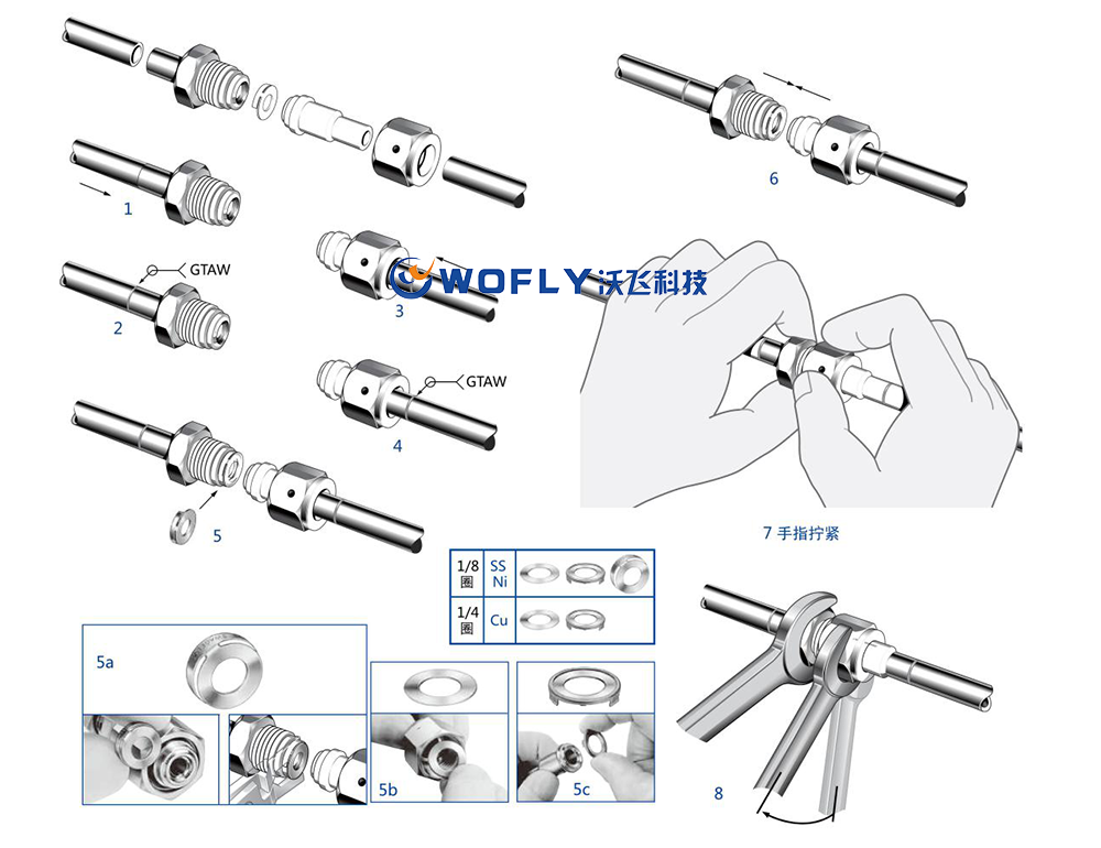 VCR接頭安裝步驟: