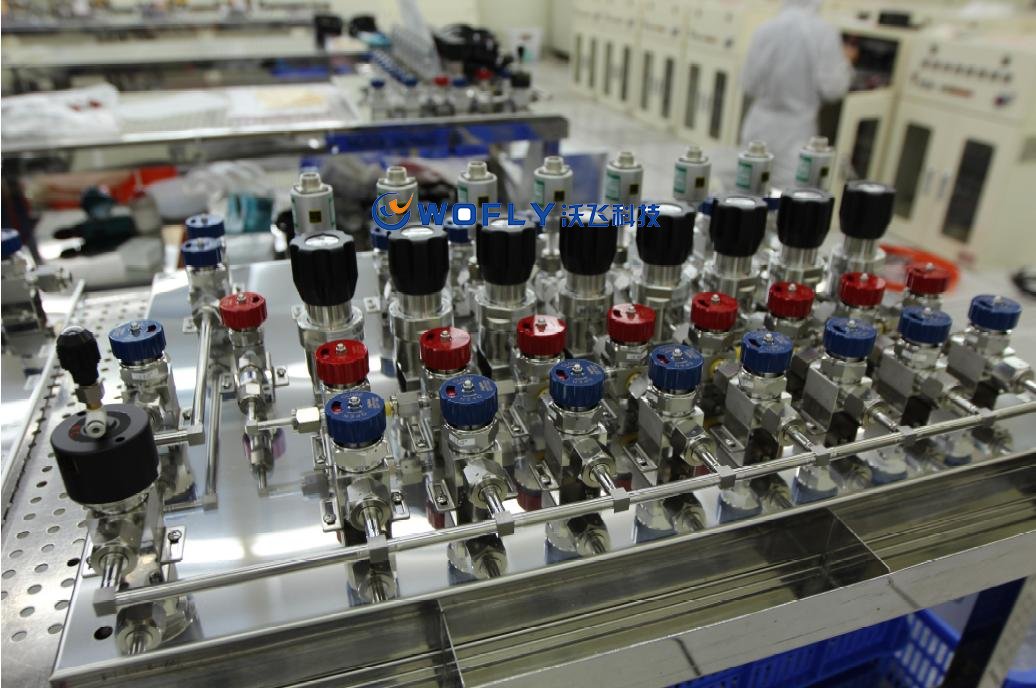 特氣輸送面板是氣源部分非常重要的控制單元。一般工藝氣體從鋼瓶出來,經(jīng)過高壓控制盤面時,都實現(xiàn)了一次調(diào)壓、過濾、流量穩(wěn)定、吹掃、抽真空、壓力偵測等功能。不同的氣體和工藝需求,可以根據(jù)實際情況定制具體功能。現(xiàn)階段,越來越多的高校實驗室引入了ICP、PVD、PEVCD等設(shè)備進(jìn)行芯片鍍膜、刻蝕方面的研究,這些工藝氣體多是硅烷、乙烯、溴化氫等毒腐、易燃易爆性氣體,對于氣源的控制要求非常高,也給供氣面板提出了很多要求。